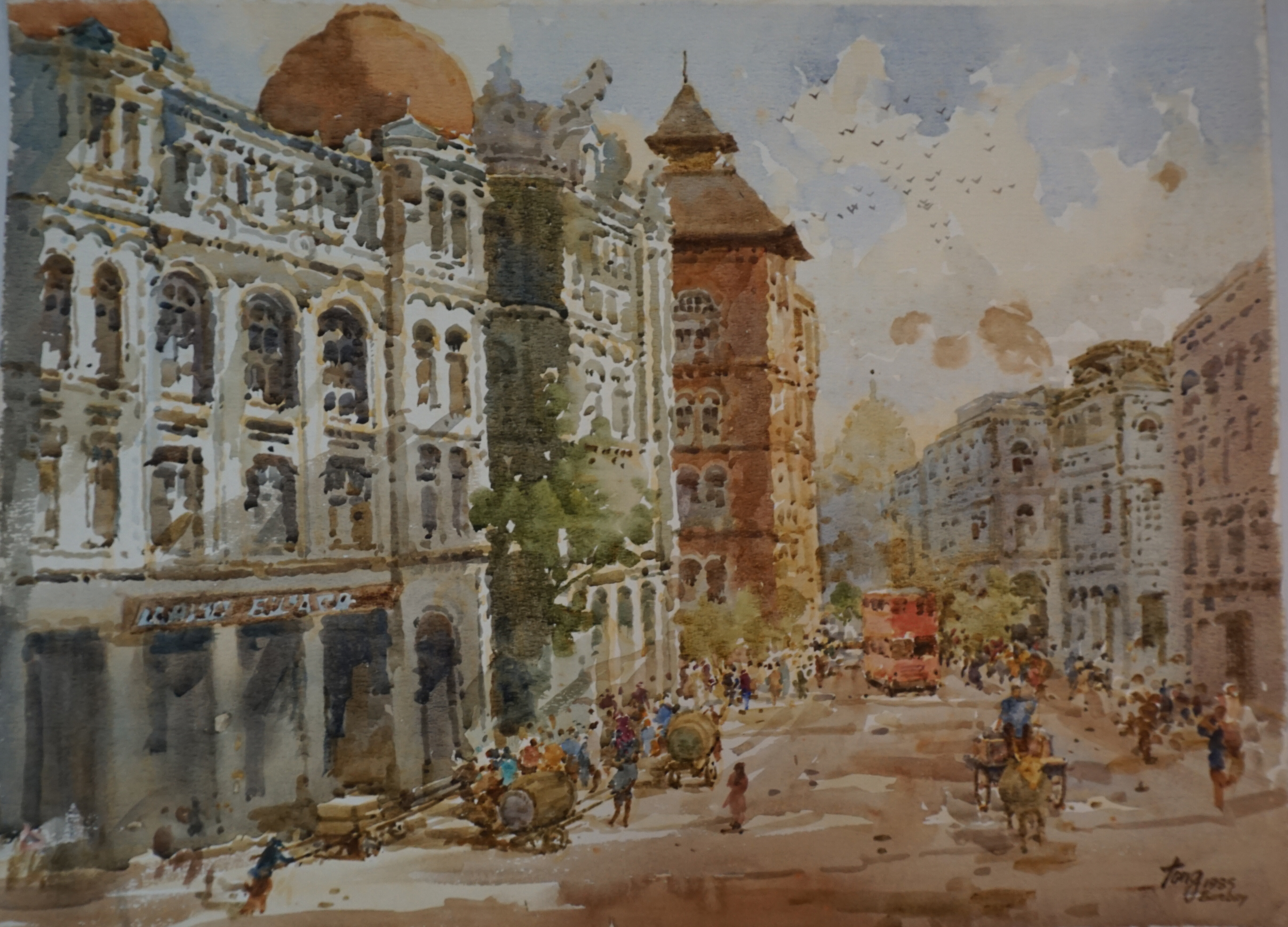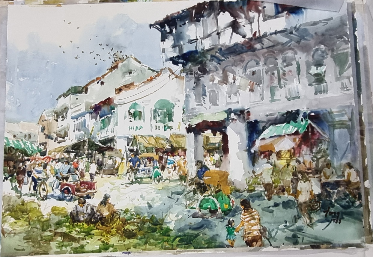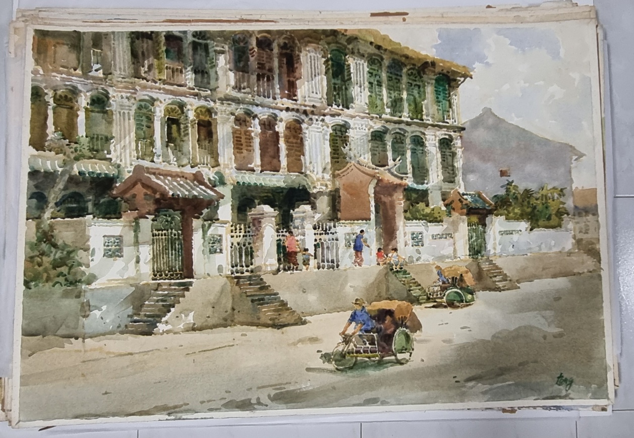 This era shows heavy colors and opaque paints filling up almost the whole canvas. See this Chinatown painting with a Trishaw in front of the building.